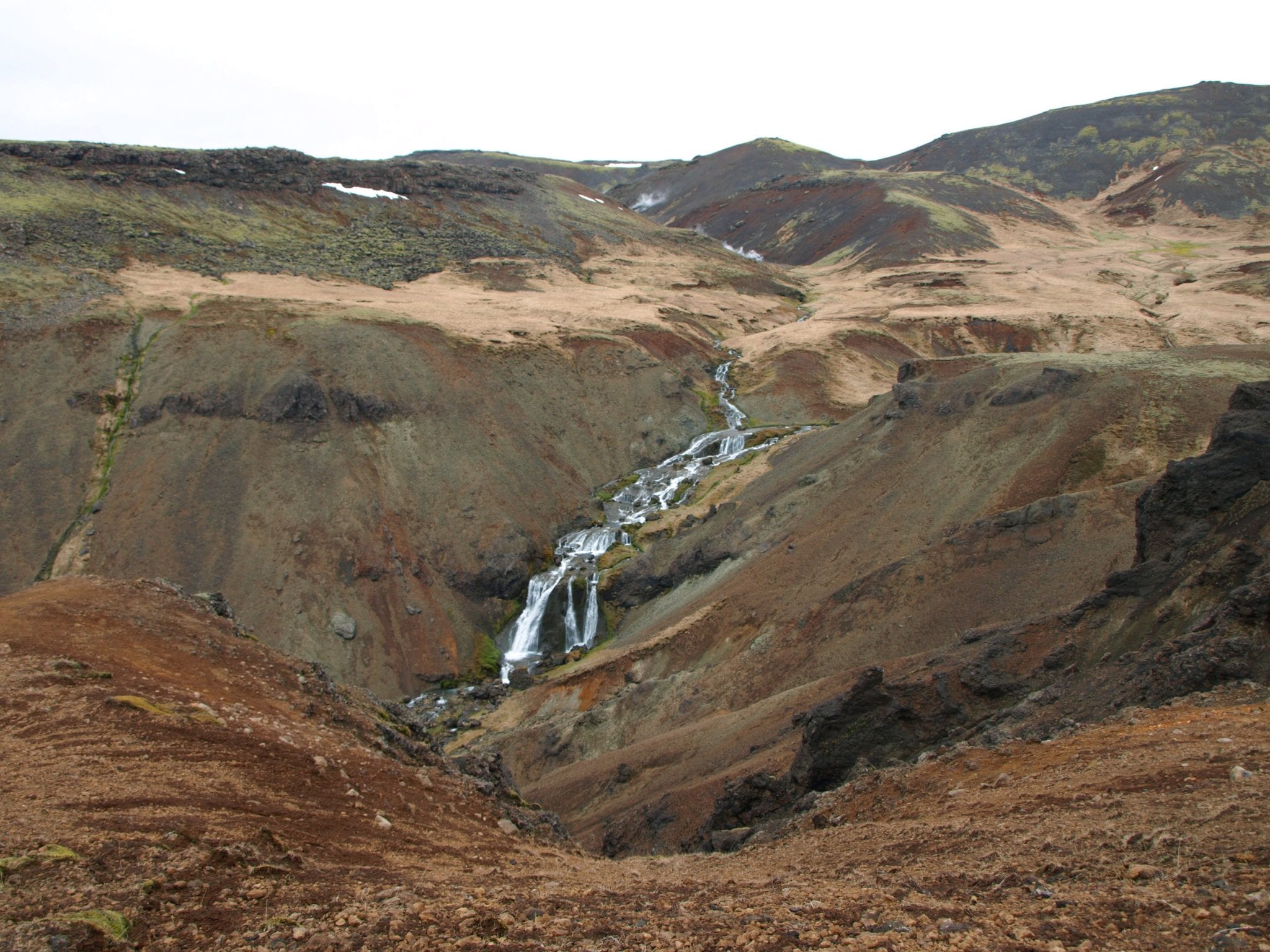 Our destination was a short half hour drive toward the southern part of the island.ย After a quick pit stop at a rest area near Hveragerรฐi, we set out.ย Gulli told us to stick with him on the trail, as we were hiking in a high-heat area where the landscape was constantly changing.ย Due to the hot water underneath the ground as well as a 6.3 magnitude earthquake in 2008, new springs are opening up all the time โ and accidentally stepping in one would beโฆless than fun.